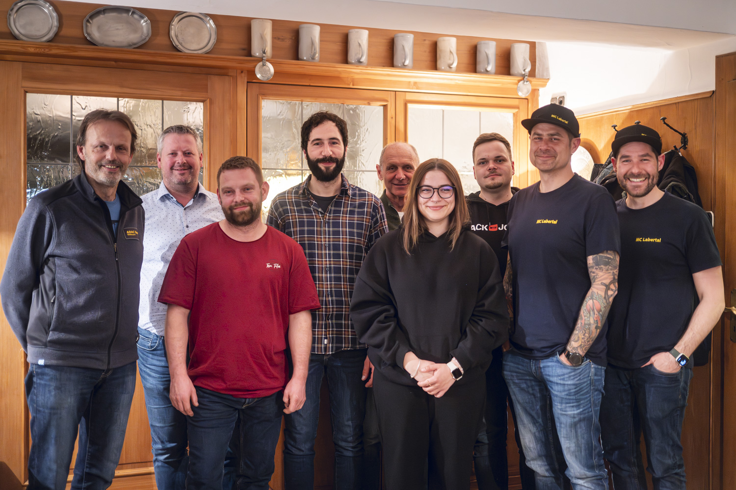 Die Vorstandschaft des MC Labertal e.V. im ADAC (v.l.n.r. Christian Götzenberger, Andreas Dinzinger, Fabian Götzenberger, Manuel Schmid, Johann Schmid, Hannah Schwarz, Dominik Maier, Martin Schwarz und Andreas Schwarz)